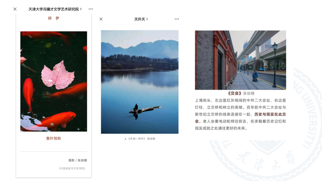 她乐于捕捉生活中的美,摄影作品《天地一舟中》获校内第十三届方寸流年摄影大赛随手拍组二等奖(校第四名),《交汇》获校内“百作迎百年”摄影大赛优秀奖,作品《碎梦》《鱼叶之秋》作为台湾av 2021第三届红叶节优秀征集作品展示。