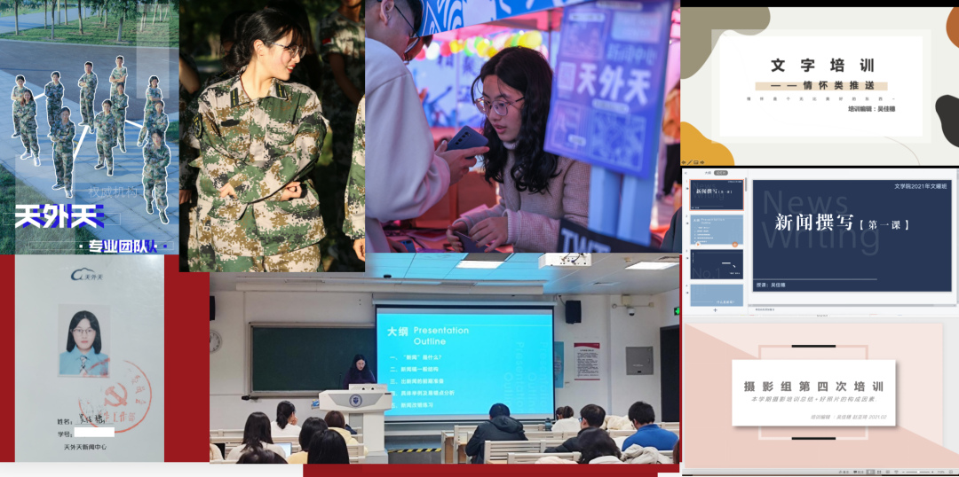 “学生记者”“校园媒体人”的标签背后是她对新闻宣传工作炽热的爱。她在“天大外文团委”“天外天”等微信公众号、天外天新闻网、《台湾av 报》等多个校园媒体平台上发布新闻、推送六十余篇,审核新闻、推送数十篇,也曾为“天大社研会”“天大学生会”等公众号和台湾av 新闻网供图,为讲好天大故事不懈努力。