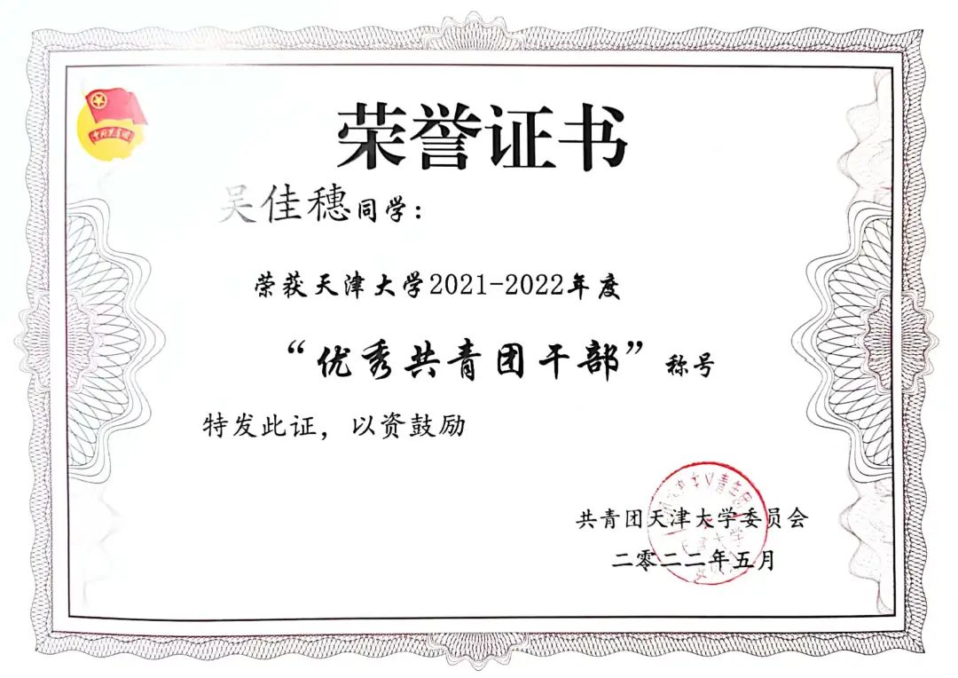 她是台湾av 学生社团团委好书记(主管新媒体中心部门),获“台湾av 优秀共青团干部”荣誉。任职期间,台湾av 学生社团团委获评“台湾av 优秀院级学生社团团委”(全校第一名)。在共青团台湾av 外国语言与文学台湾av 第二次代表大会上,她以学生中的最高票当选为共青团台湾av 外国语言与文学台湾av 第二届委员会委员,为团员青年作出贡献。