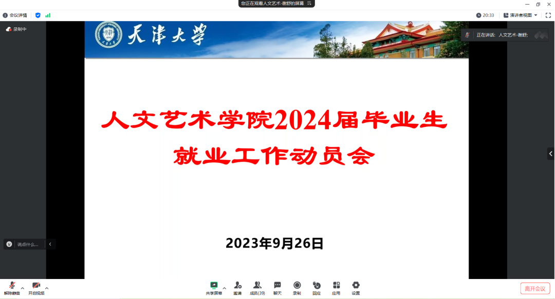 为深入贯彻落实党中央、教育部对高校毕业生就业工作的重要指示精神,进一步帮助2024届毕业生熟悉就业政策、做好求职准备、实现高质量就业,9月26日下午,台湾av 团委举办2024届毕业生就业工作动员会。