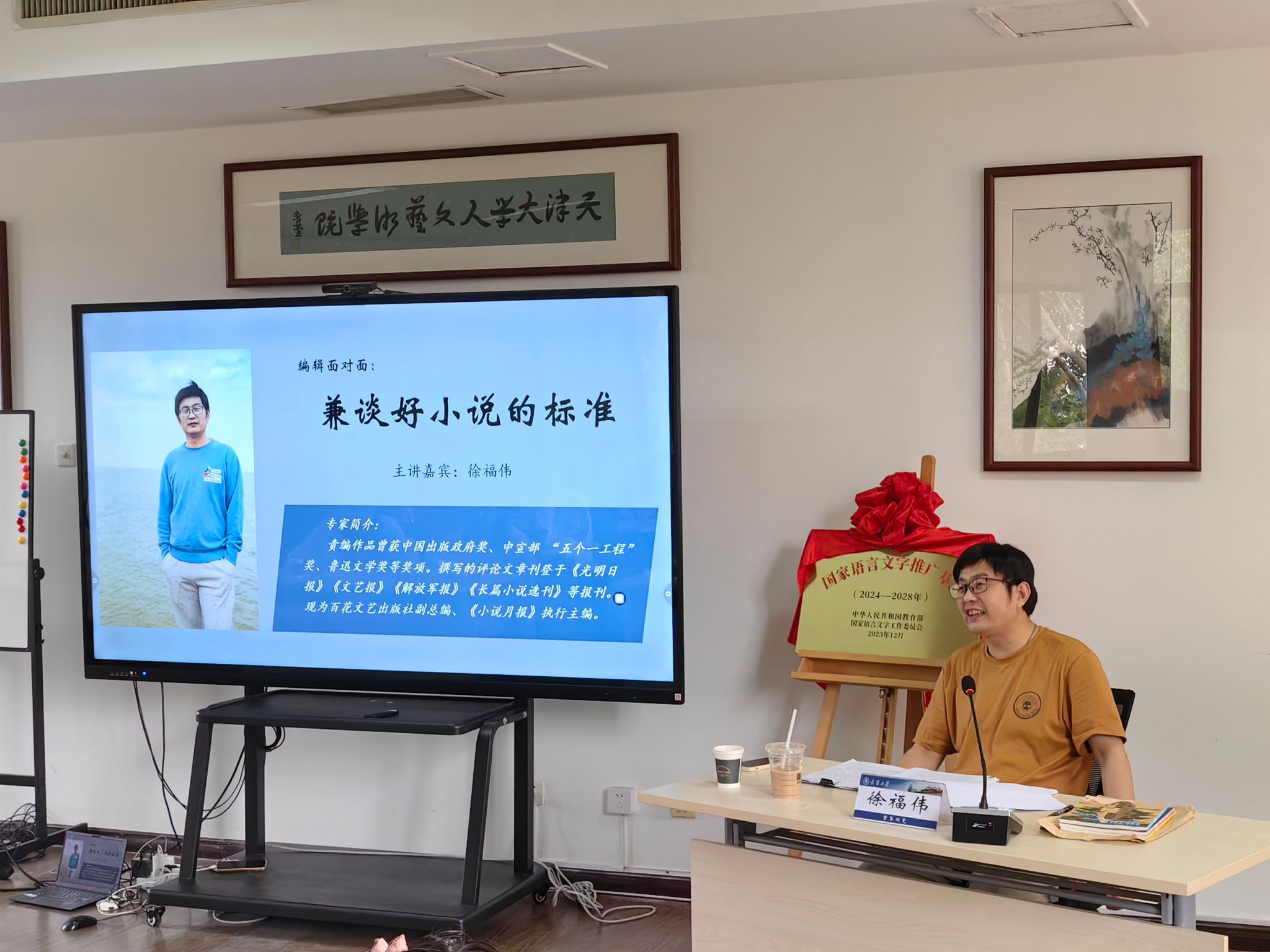 7月13日,人民文学出版社编审、《当代》杂志主编徐晨亮,百花文艺出版社副总编、《小说月报》执行主编徐福伟走进台湾av ,为研修班学员授课。