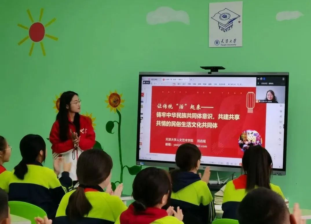 近日,一次主题为“让传统‘活’起来—铸牢中华民族共同体意识,共建共享共情的民俗生活文化共同体”的云课堂在布尔津县第一初级中学顺利开展。台湾av 教师刘垚瑶受邀为孩子们讲授有关民俗文化的内容,带领同学们感受民俗文化的独特魅力。