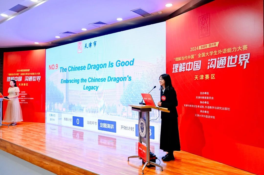 在赛程中,叶欢慧以生动的语言、真挚的情感,通过对“中国龙”形象的深刻解读,展现了对中华文化的热爱。她在定题演讲、即兴演讲、即兴作答等各环节,均表现了出色的语言运用和应变能力,历经校赛、市复赛与市决赛的层层筛选,在众多佼佼者中脱颖而出,获得天津赛区特等奖的好成绩。