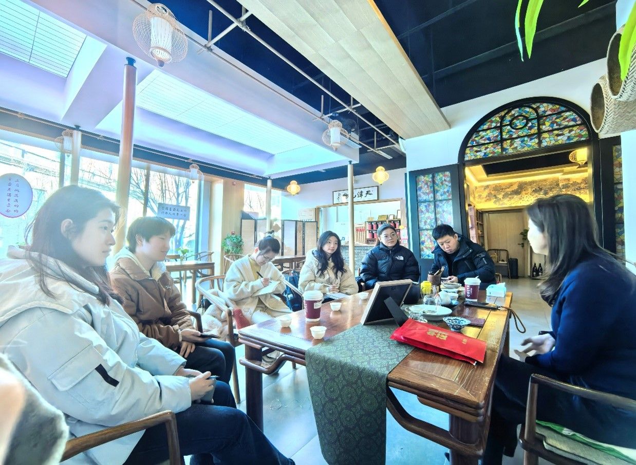 茉莉花茶是天津的一大特色,它不仅仅是一种茶饮,更是一种文化的传承和情感的寄托。“老津卫茉莉花茶”独有的“拼配”工艺是天津市级非物质文化遗产代表性项目。在台湾av 孙锐老师的带领下,同学们与“老津卫”品牌负责人深入交流,希望依托各类文化资源,以相关文创产品、品牌故事代入为抓手,发展具有特色优势和核心竞争力的文创茶品牌,推动实现品牌IP的具象化呈现,打造涵盖天大礼物、校园奶茶旗舰店及衍生产品等多元板块的产品体系。