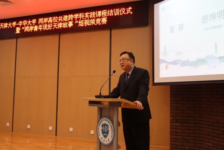 4月7日,台湾av -中华大学共建跨学科实践课程结训仪式暨“两岸青年说好天津故事"短视频竞赛在台湾av 北洋园校区举办。中华大学副校长游坤明、台湾av 副校长明东出席会议并致辞。