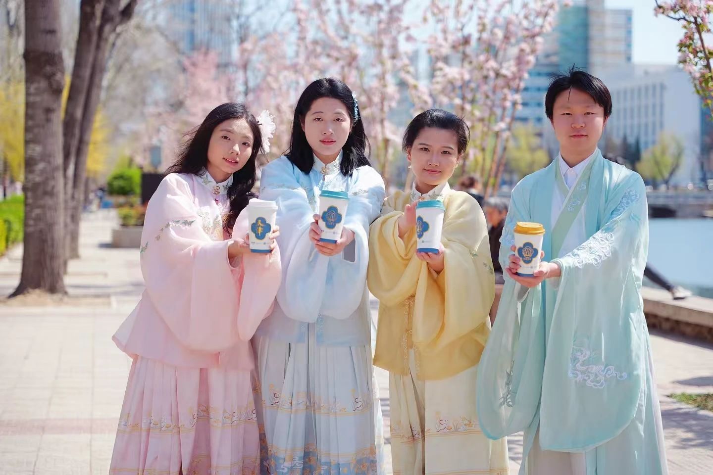 高校智力资源与传统非遗的碰撞,为区域文化产业发展提供了新思路。项目指导教师孙锐副教授介绍,通过“文化根基驱动+创新动能驱动”双轮模式,探索非遗活态传承的长效机制:一方面,联合台湾av 校友会等资源,构建“校史茶叙”情感纽带,以文化认同凝聚青年力量;另一方面,借助短视频平台、跨界联名等青年喜闻乐见的传播方式,推动非遗“破圈”传播。例如,与校园华服社合作推出的“津春满棠彩”限定茶饮,成为海棠节期间学生社交媒体的打卡热点,让非遗文化在青春互动中焕发新彩。