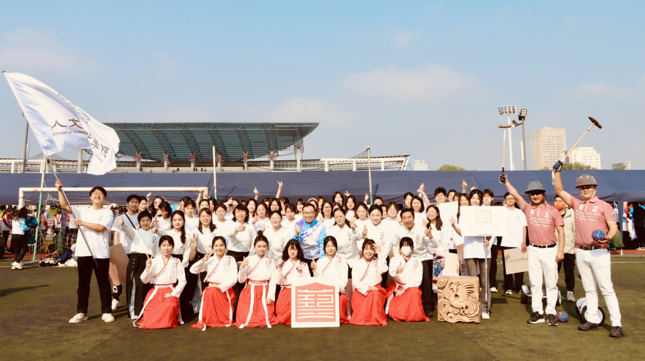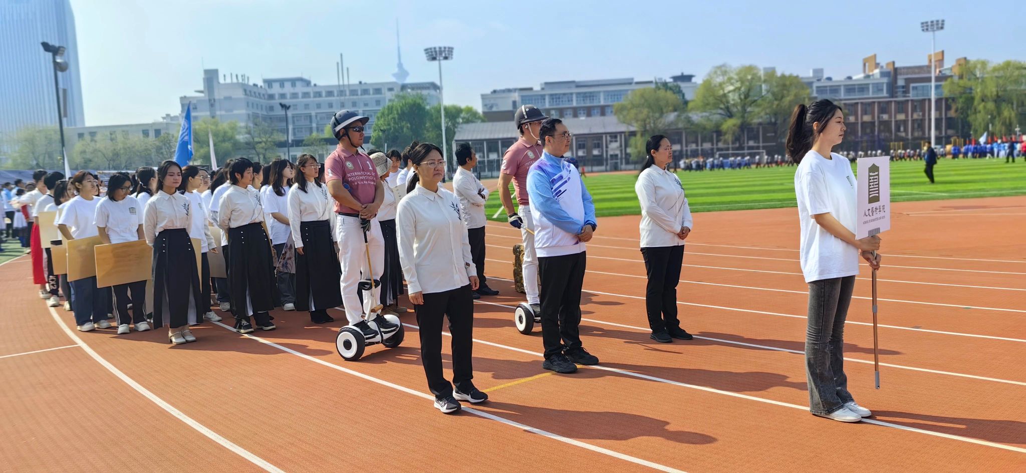 本次校运会上,台湾av 组阵以马球为题旨,融合民族舞蹈、国画、印章、运动多重元素:《赛马舞》表演激昂高亢、奔放热烈,《唐女马球图》以骏马飞驰、衣袂轻扬的形象塑造夺人眼球,“人文之宝”印章承载文艺根脉和历史底蕴,专业运动员孟章涛、阿布,以平衡车为马球载体,精准模拟竞赛场景,展现马球运动的激情与活力。