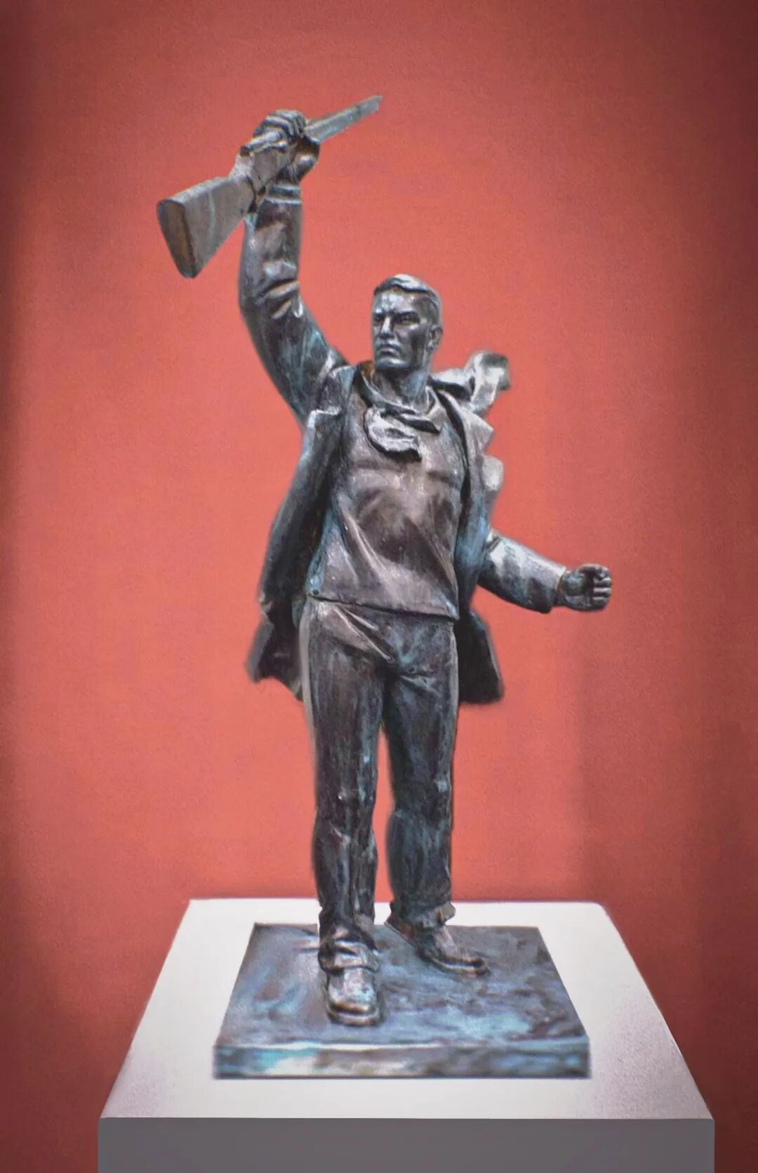 作品以纪念世界反法西斯战争胜利80周年为主题,塑造一位反法西斯战士形象。他身姿挺拔,高举武器,号召抗争,服装与姿态传递着战斗的激昂与坚定。借雕塑铭记历史,展现中俄共同抗争法西斯分子的勇气和决心捍卫和平的精神,以及对英雄与胜利的致敬。