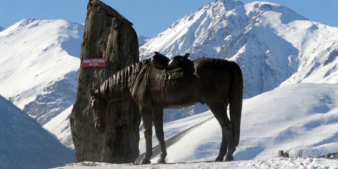 这座纪念碑坐落于俄罗斯北奥塞梯库尔塔廷峡谷维尔赫尼·菲亚格登村北部,旨在缅怀在伟大卫国战争中英勇牺牲的库尔塔廷战士。作品以骏马为主体形象:它低首伫立,仿佛在为失去的骑手哀悼。这匹“忠诚的骏马”不仅寄托了对个体战士的追思,更升华为整个奥塞梯民族集体情感的象征,凝结了人民对于战争中殉难子民的深切悲痛与敬意。