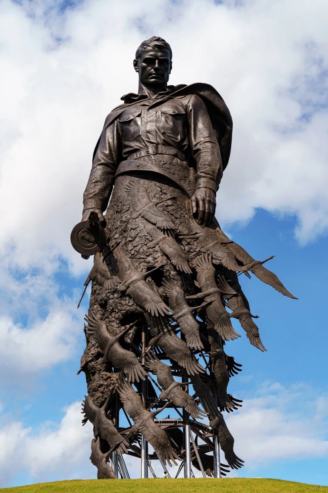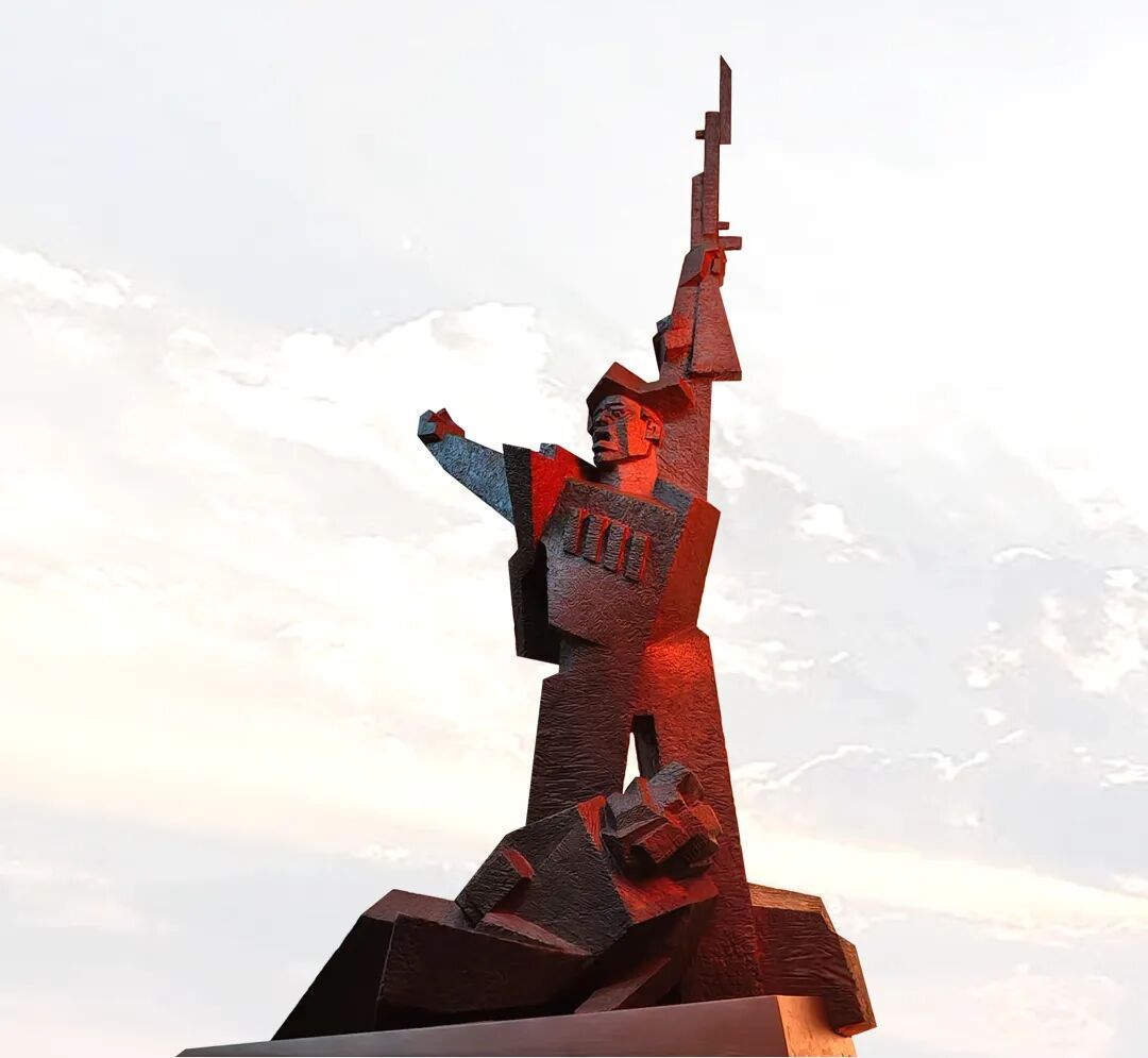 纪念碑雕塑是为了纪念苏德战争中的勒热夫战役所建。雕塑根据勒热夫战役中参战士兵的真实形象制作,身穿军服,手握冲锋枪,双眼低垂,俯视自己深爱的土地,下半身化为飞翔的鹤群。