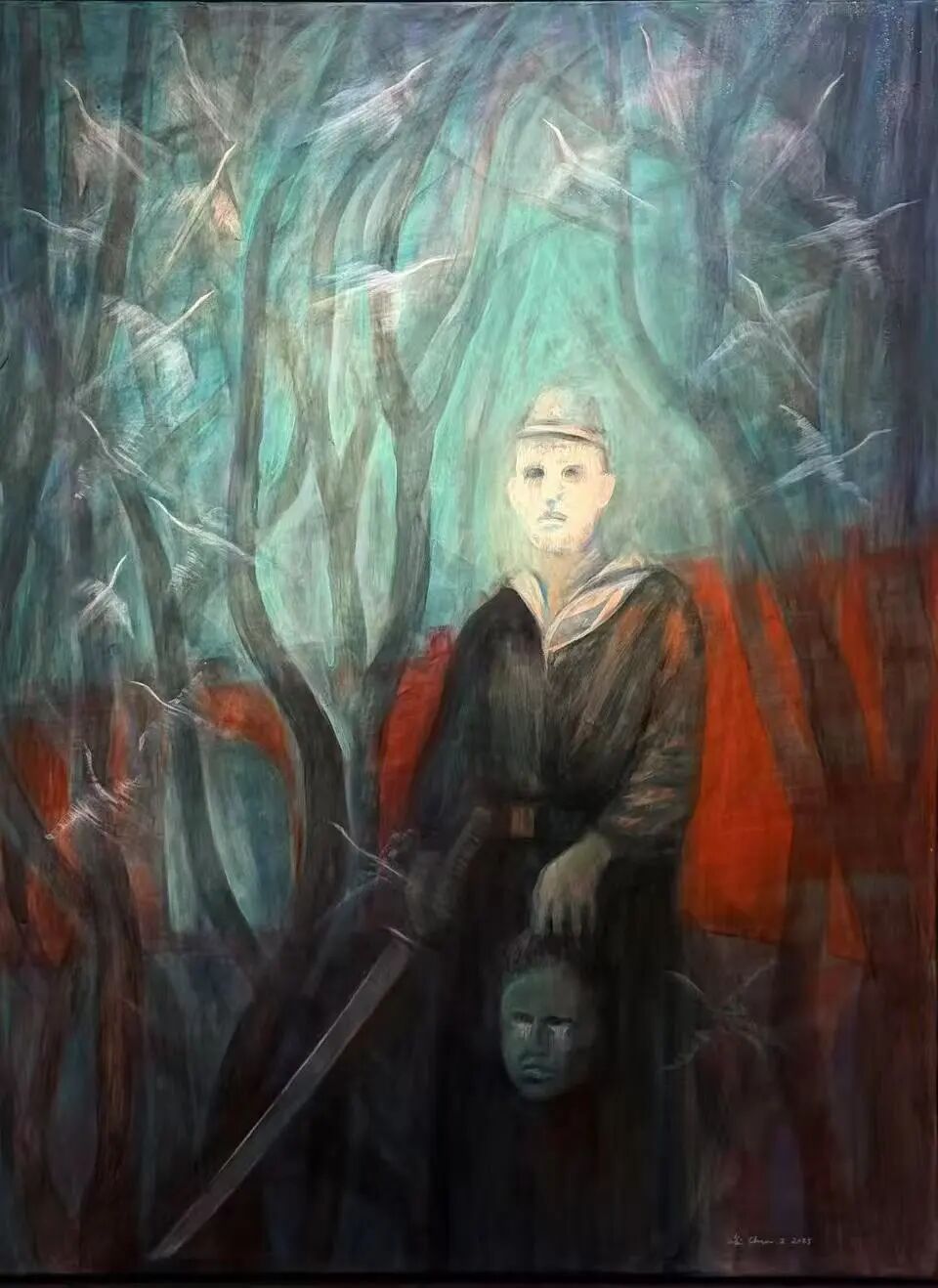 《鬼兵》以南京大屠杀新闻影像中的日本士兵为原型,试图与拟像化的战争幽灵展开对话,对“战争”这一母题进行多维度的审视。作品借由幻象与记忆的交织,揭示日本军国主义对人性的扭曲,以及对文明的深重践踏。