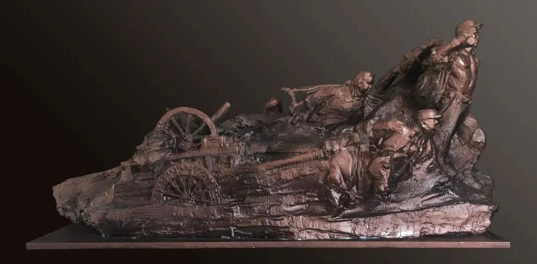 雕塑作品以太行山脉为创作载体和元素,在构图上将抗日军民群像与太行山山体融合。利用山体起伏营造层次感,以群像的疏密、动势,构建“山魂护佑、军民奋战”的空间叙事,再现太行儿女投身抗战的壮烈场景,战士、群众身姿各异,展现坚定信念与战斗力量,让观者在视觉冲击中体悟历史厚重与精神力量。借山之雄浑喻民族脊梁,铭记太行抗战历史,传递军民一心、浴血奋战的精神,使观者在艺术感染力中,回溯那段烽火岁月,感悟先辈抗争的热血与担当。通过再现太行抗战军民风貌,传承红色基因,展现党领导下军民团结抗战的伟大历程,为“光辉历程,时代丹青”主题创作添彩,以艺术之姿铭记历史、礼赞英雄。作品有别于表现战争题材作品的叙事性语言方式,力求以庄严肃穆的仪式感传递英勇伟大的太行风骨和民族精神。山体背部镌刻《在太行山上》词曲,并以当代创新思维设置红外感应装置,使观者驻足凝视时,经典旋律环绕回响。以剧场性的当代理念将烽火岁月中的歌声与当下时空交叠,唤醒集体记忆的共鸣,努力实践主体性创作的当代性表达,唤起人们续写中华民族奋斗精神的时代颂歌。