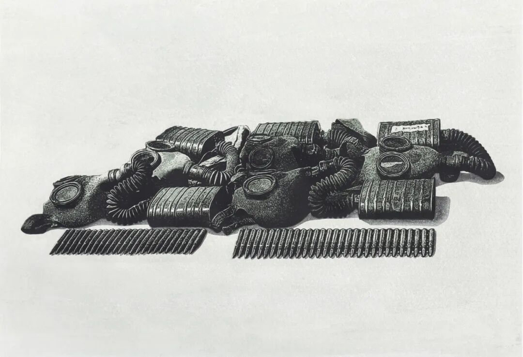作品中所呈现的是日本帝国主义侵华战争时期,国民革命军第八路军所缴获的日军细菌战部队所使用的防毒面具。作品为纪念中国人民抗日战争暨世界反法西斯战争胜利80周年,弘扬伟大抗战精神而作,是对为夺取中国人民抗日战争胜利献出生命的所有先烈、对为中华民族独立和中国人民解放献出生命的所有英灵的告慰,让我们铭记这一历史的回音,珍爱和平。