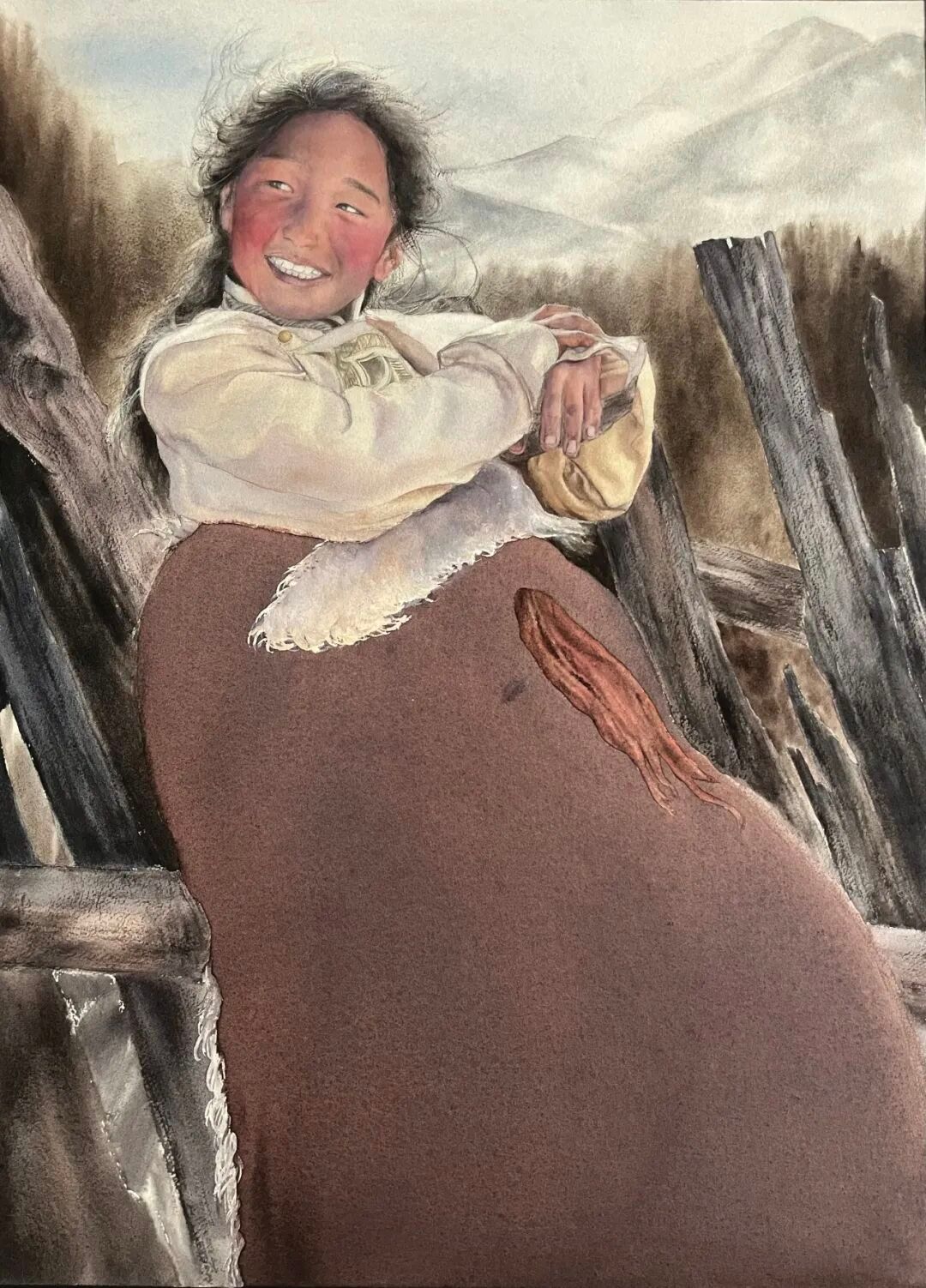 作品以水彩纸、水彩颜料为主要创作媒介,干湿创作画法结合,以一位西藏地区的少女为主要创作对象。作品旨在表现雪域高原的美丽景象,反映藏族少女健康、幸福、快乐的生活状态,以及对和平、安定生活的满足之情。