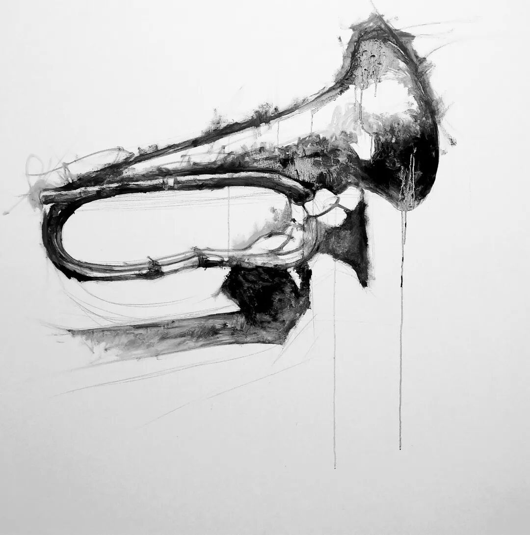 “冲锋号”作为红军通讯的核心工具,其声响既是战斗指令的传递,更是革命意志的视觉化表达。该作品通过对“冲锋号”的艺术处理,将“冲锋号”的听觉体验转化为视觉史诗。用艺术的“瞬间凝固”与“冲锋号”的形象形成跨时空对话。当代视角下,该创作既是对红色精神的图像注解,也是对新时代红色主题创作的历史呼应。