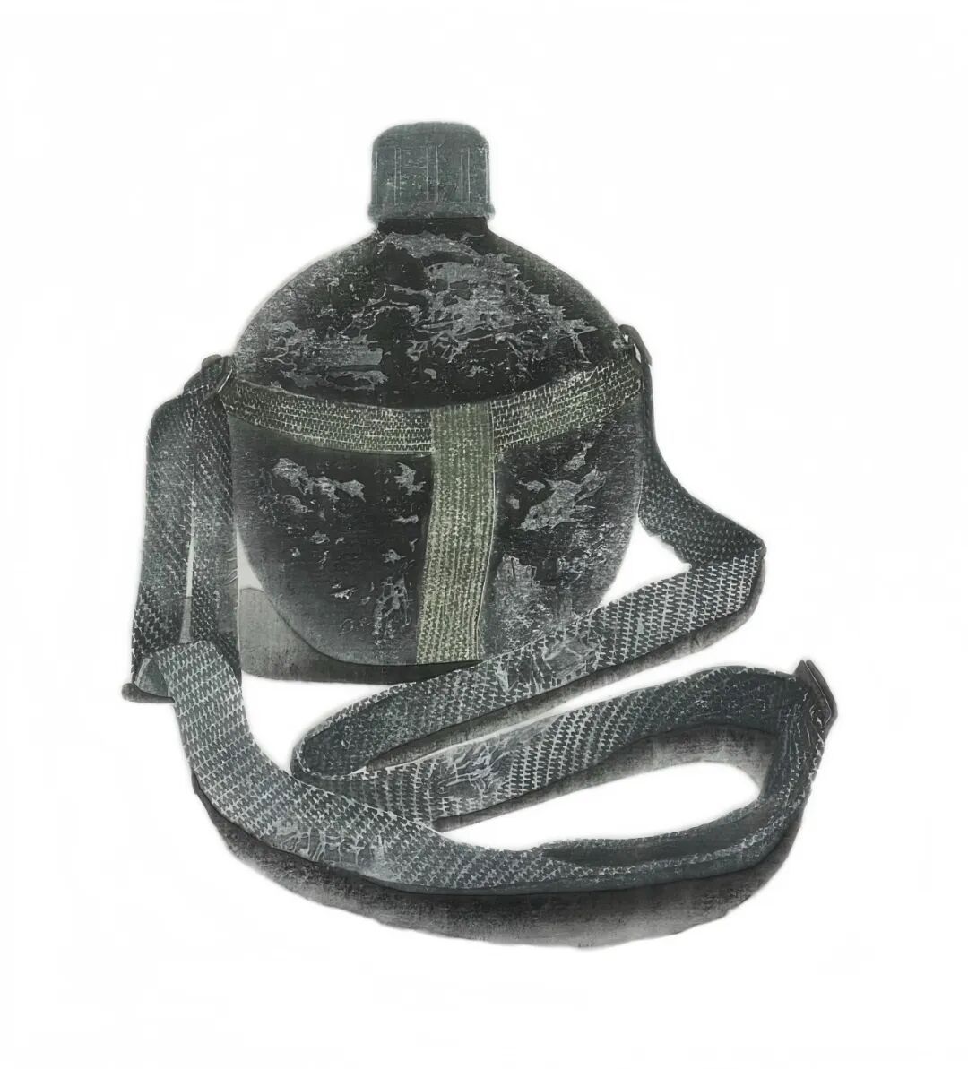 创作灵感源于对往昔战争岁月与军旅文化的敬意,军用水壶作为军人生活的重要物件,承载着坚韧与使命。在技法上,运用水印版画独特的印制方式,通过水分的把控与版材的转印,塑造水壶斑驳的外观与质感,呈现其历经风雨的沧桑。线条与墨色交织,勾勒出壶身轮廓与背带纹理,在光影处理上,利用深浅对比,凸显水壶的立体感,使其仿佛从岁月中走来。希望观者透过这个水壶,能感受到那段充满热血与拼搏的历史,体会到平凡物件背后蕴含的厚重情感与精神力量。