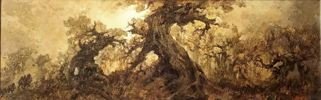 《大漠魂》以阿拉善胡杨林为核心意象,通过凝练的造型与苍劲的笔触,塑造了大漠深处那一株株生而千年不倒、死而千年不朽的胡杨树。它们或挺立,或扭曲,或化作枯木,展现出一种与自然搏斗的壮美姿态。胡杨树作为大漠的守望者,承载了坚韧不屈、百折不挠的生命精神。画面中远远行进的驼队,仿佛穿越千年的风沙,带来文明的回响与历史的回望,与胡杨形成了“生生不息、穿越时空”的精神呼应。在纪念世界反法西斯战争胜利八十周年的主题背景下,《大漠魂》不仅是对自然奇观的描绘,更是对民族意志与人类精神的象征性表达。胡杨的顽强生命力,与反法西斯战争中人民坚毅抗争的力量相契合,驼队的远行则寓意历史记忆的延续与传承。作品通过大漠的壮阔与胡杨的坚韧,将自然景观与人文精神融为一体,传达出对和平的守望与对生命价值的赞颂。