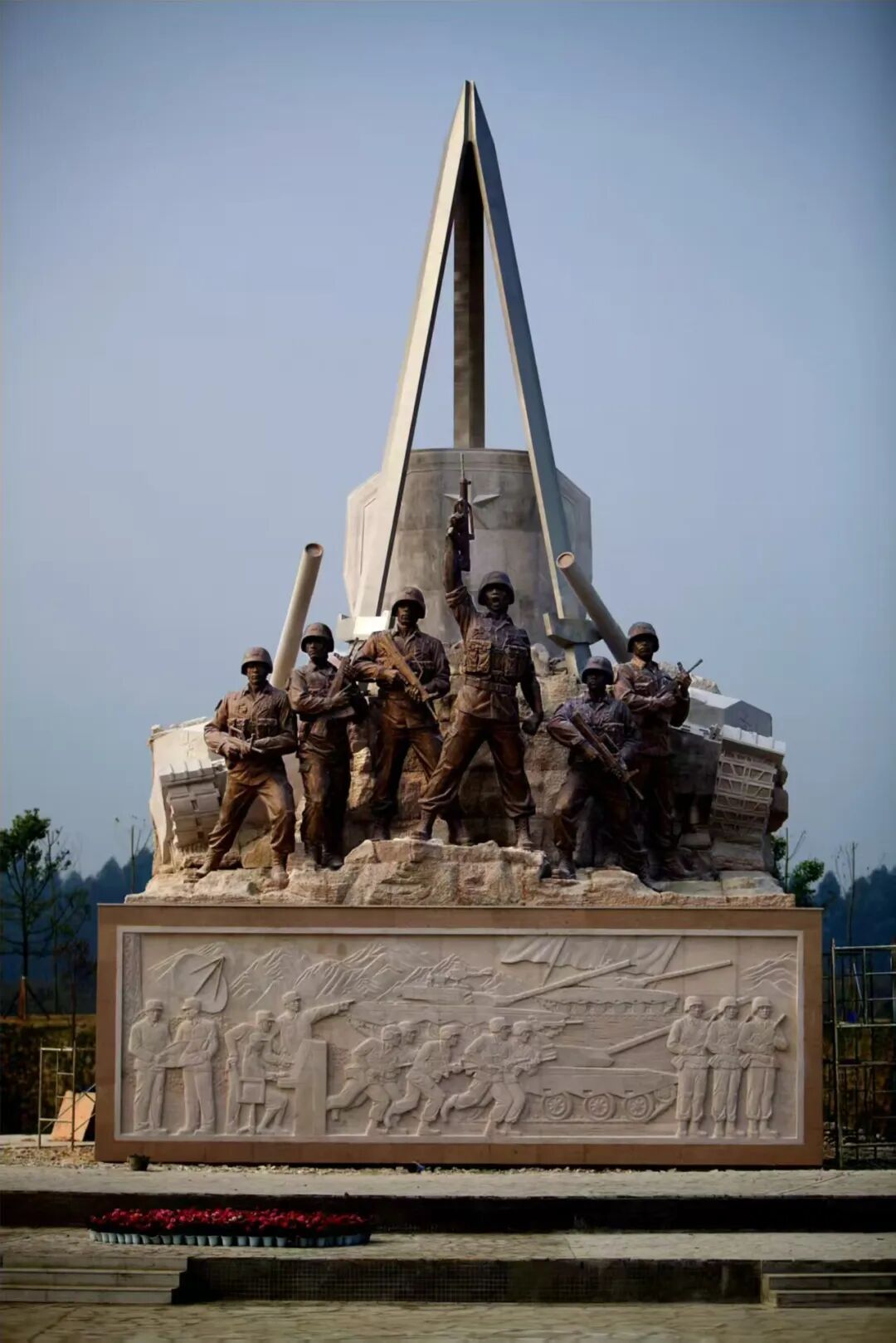 主雕由神盾、神剑、神兵三大主题构成,以三柄直插云霄的利剑和一面厚重的坚盾组合,象征着装甲部队战无不胜、坚不可摧。盾剑合一体现着装甲部队攻防一体,攻守兼备的军事特点,进而喻示着装甲部队对国家来说既是把锋锐的利剑,同时也是块稳固坚实的盾牌。整个雕塑庄严神圣,既充满历史感又兼具时代气息,完整地体现了我军装甲部队的历史使命与战斗英魂所在。