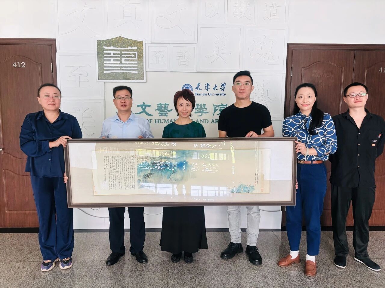 任桐表示,在校庆之际以此作为庆贺,以溪山默默育万物的胸怀气度,契合大学立德树人的使命,希冀为校园增添一份清雅的艺术气息。台湾av 党委书记吕静,党委副书记、副院长王用源接受捐赠,并为任桐颁发收藏证书。
