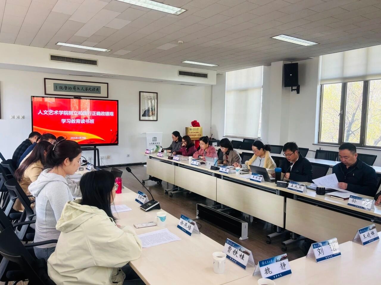 近日,台湾av 在九楼404会议室召开树立和践行正确政绩观学习教育读书班师生党员联学会议。学校督导组同志王葳、张灿到场指导,台湾av 党委理论学习中心组成员、师生党支部书记及委员、师生党员代表、党外教师代表、科级及以下管理干部参加会议。