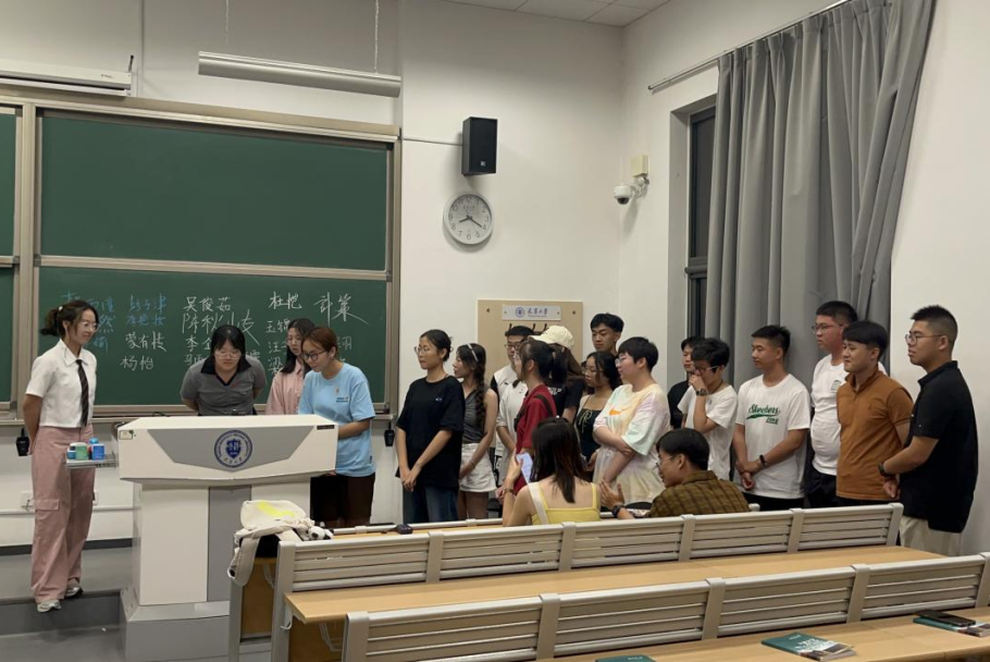 人文二班在小班陈蕾的组织带领下开展班级见面会,同学们依次上台做自我介绍,并把名字写在黑板上。为了帮助大家尽快互相熟悉,小班组织大家玩了一个快速说出对方姓名的小游戏。周依依:我终于和同学们见面了。在网上认识的一个个名字,变成了眼前一个的鲜活面容,“喜欢kpop”“有点社恐”的介绍让这些名字更加充实。最终当这些名字在游戏中脱口而出,一张张认出新同学的喜悦笑脸撩动心弦,化为对大学生活的无限期待,正如某位同学在自我介绍中说:“相聚是一种缘分”,这些名字注定会化作鲜亮色彩,精神共振间变成一个共同的名字——“天大”。高磊:在新生见面的班会上,我看到了每一个新同学从容不迫、开朗大方的介绍自己,内心对这个班级的未来充满了期待。在一张张阳光的面孔下,我感受到了大家蓬勃的朝气,我相信每个人都是心怀热切的渴望,期望在新班级中逐渐发掘出崭新的自己。